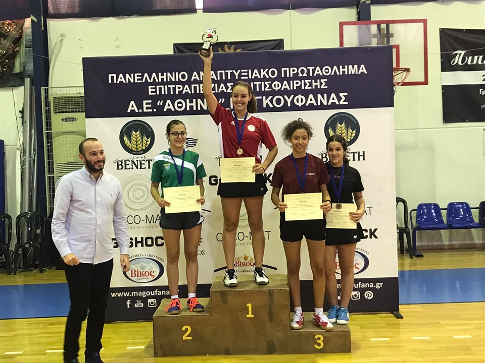 Τρία χάλκινα μετάλλια είναι ο τελικός απολογισμός για την ελληνική αποστολή στο διεθνές τουρνουά νέων και παίδων της Βόρειας Μακεδονίας, που ολοκληρώθηκε σήμερα στα Σκόπια. Η Χρυσή Φωτιάδου πήρε την 3η θέση στο απλό κορασίδων, η ίδια αθλήτρια και η Δέσποινα Άμπα κατέκτησαν το χάλκινο μετάλλιο στο διπλό κορασίδων, ενώ επίσης στο διπλό αυτής της… Read More